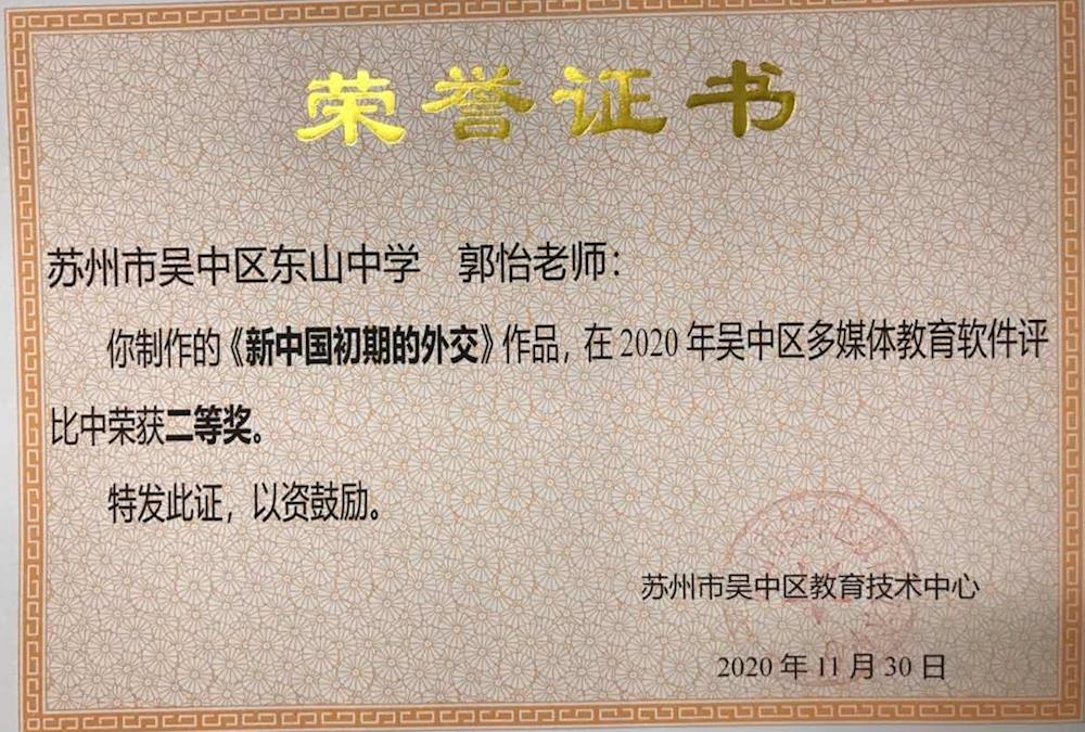 2020年吴中区多媒体教育软件评比结果公布 来源: 发布时间:2020-09-22 16:39:26 浏览次数: 次 【字体:小 大】 2020年7月,我校10位老师的多媒体作品参加了吴中区组织的多媒体教育软件评比活动,高敏、马慧慧、郭怡老师获区二等奖;许敏、费惠兰、刘欢、马咏梅、宋法蓉、李海青、张秋红老师的作品获校一等奖。希望获奖老师们在多媒体教学软件制作中不断进步,取得更好成绩!希望全校任课老师重视自身信息技术应用技能的培养。东山中学教技室2020年9月22日 分享到: 【打印正文】
